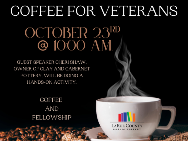 Join us on Thursday, October 23rd at 10:00AM for Coffee for Veterans – spouses and partners are welcome.
