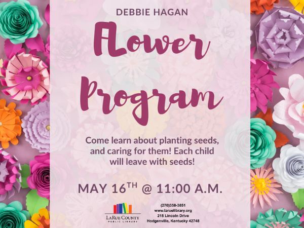 Join us on Saturday, May 16th at 11:00am as Debbie Hagan leads a flower program!