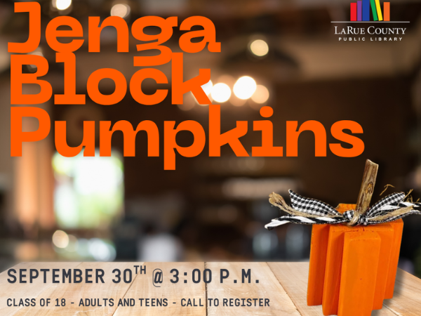 Join us on Tuesday, September 30th @ 3:00pm to make jenga block pumpkins