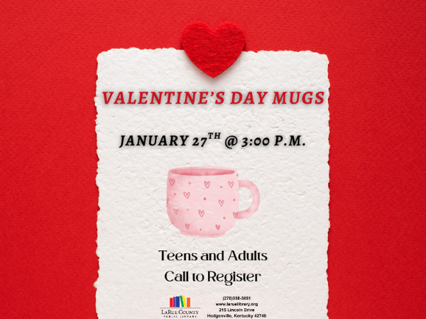 Join us on Tuesday, January 27th @ 3:00pm to make Valentine’s Day mugs!