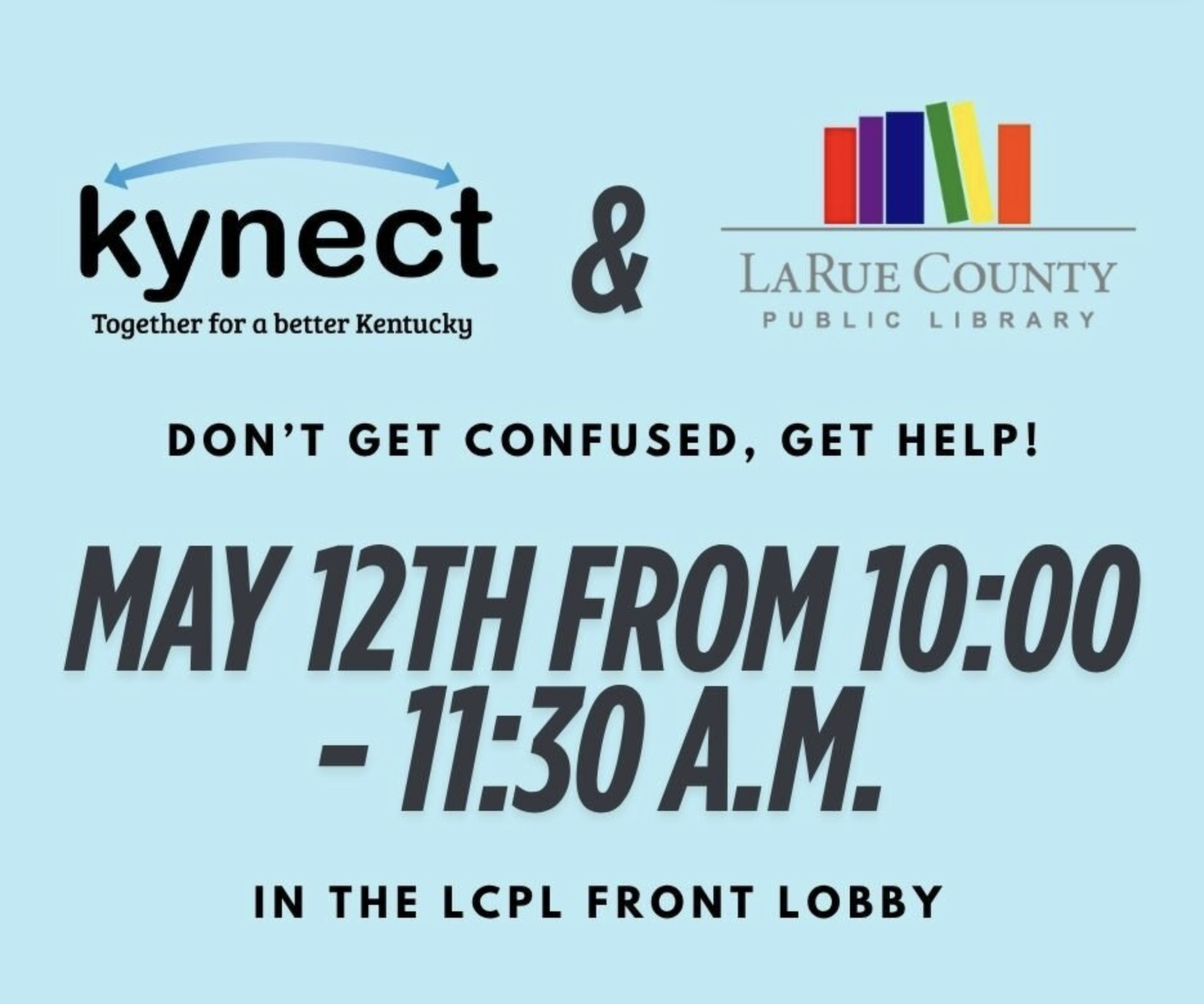 What can Kynect do for you? Ginny Whitt will be set up in our lobby on Tuesday, May 12 18th, from 10:00-11:30 AM. Not sure where to start? Ginny can help […]