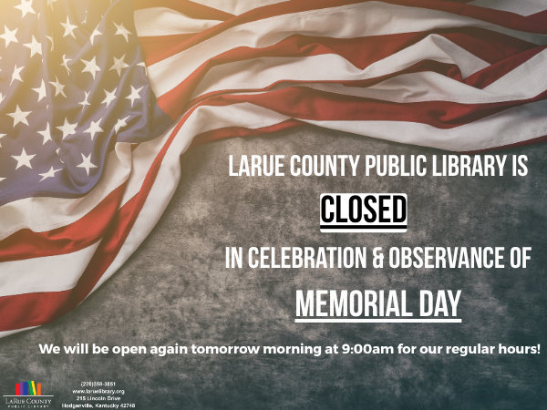 We are closed today, Monday May 25th, in celebration and observance of Memorial Day. We will be open again tomorrow morning at 9:00am for our regular hours!