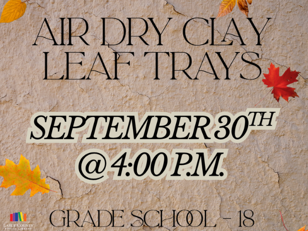 Join us on Tuesday, September 30th @ 4:00pm to make leaf trays out of air dry clay! Grade School - 18